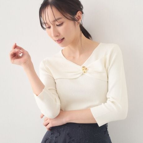 マルイウェブチャネル   /   インデックス   /   トップス   /   ニット・セーター   /   ブローチ風ゴールドパーツ付きアシメニット【洗濯機OK/坑ピル】