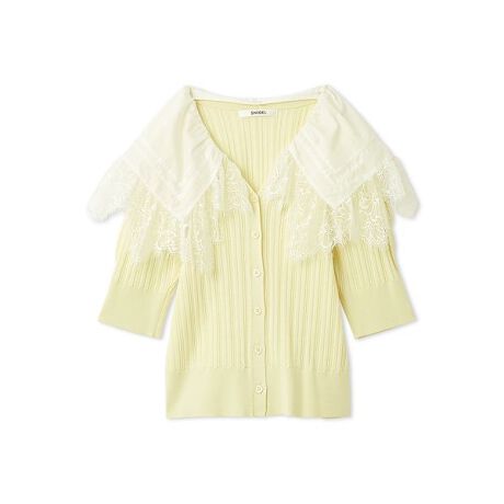 <b>【エンブロイダリーレースを施したビッグカラーがフェミニンでモードなニットカーディガン】</b>