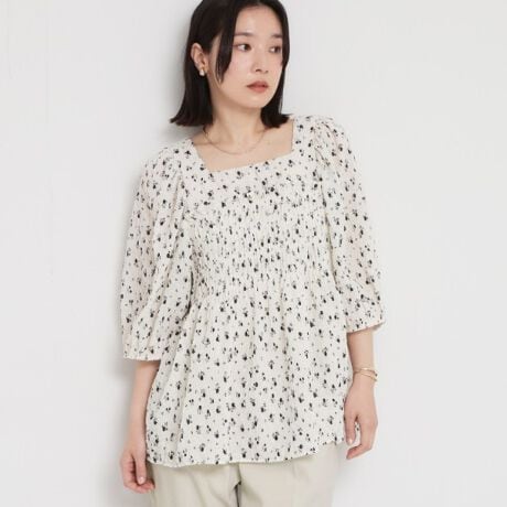 細かな花柄を散りばめたブラウス。