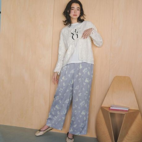 ・やわらかな光沢感とにじむようなフラワープリントがコーディネートをぐっと華やかにしてくれる柄パンツです。