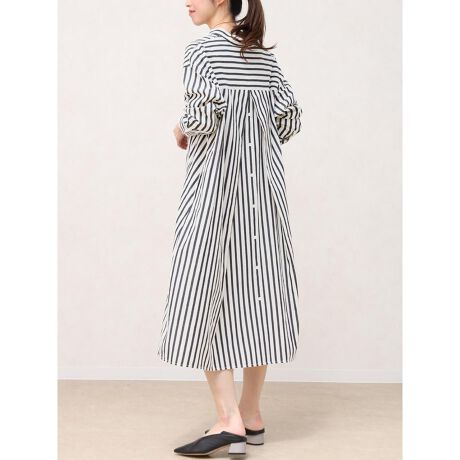 ■コットン100%のナチュラルな風合いに、バックボタンデザインで遊び心をプラスしたシャツワンピース。