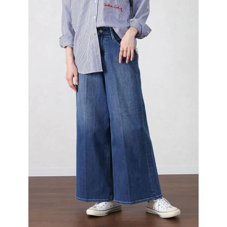 程良くゆとりのあるワイドシルエットが脚のラインを拾いにくく、バランスよく履ける1本です。