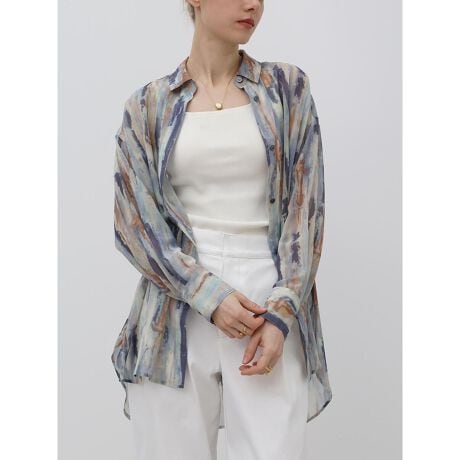 Aga好評のアートプリントシャツが今季も登場。まるで水彩画のようなニュアンス感あるアートなタッチがお洒落なシャツ。様々なトーンやカラーを混ぜながらもどこか統一感のある色味が、スタイリングにも馴染みやすい1着。さりげないシアー感が程よく清涼感と抜け感をプラス。さっと羽織るだけでもスタイリングの主役になってくれるおすすめのシャツアイテムです。