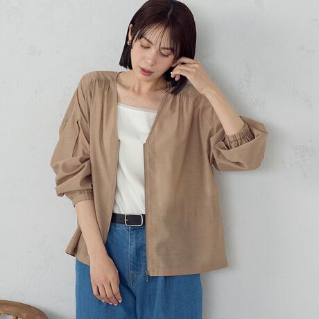 透け感を活かした軽さのあるVネックシアーブルゾンです。
