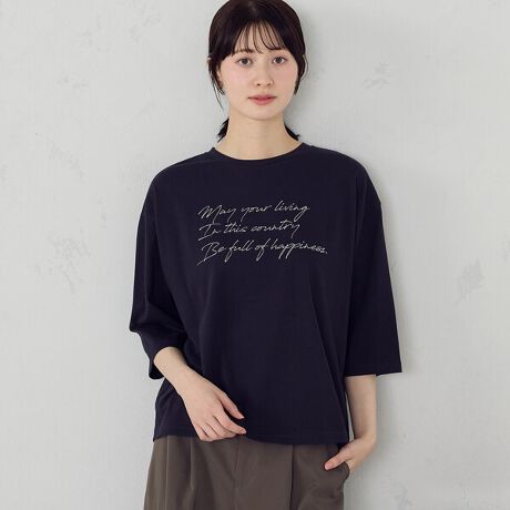 大人の女性らしく、華奢なロゴで品のあるTシャツに仕上げました。