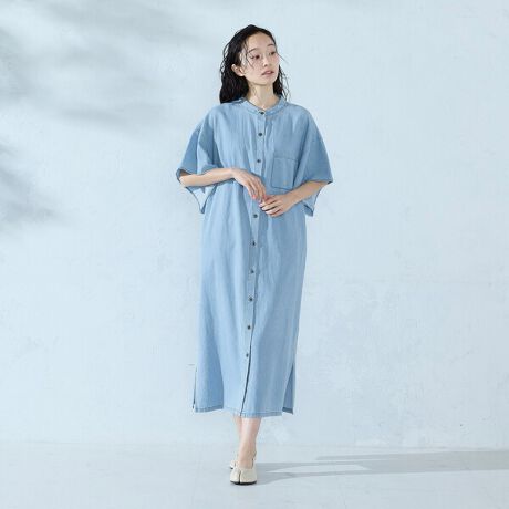 釦を全て閉じてワンピースとして着るとすっきりと見えます。