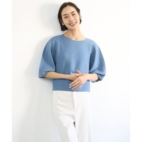 繊細なラメが上品にきらめく張りのある編地を使用し、ホールガーメント仕立てで縫い目がないため、立体的なパフスリーブが美しく際立つ一枚です。40サイズは限定店舗展開です。