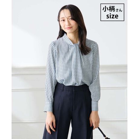 フロントのボウタイ風デザインが上品なブラウス。