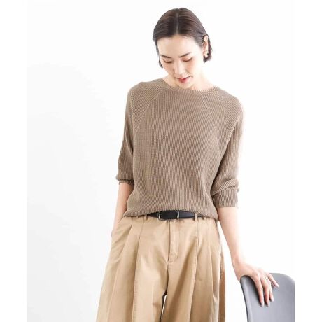 さりげなくきらめくラメが華やかな印象のニット。軽やかな7分袖で抜け感があり、パンツにもスカートにも合わせやすい一枚です。