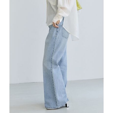 センタープレスをフロント、バック共に入れているので、履いた時のシルエットがキレイに細見えするフレアデニムパンツです。