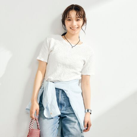 ・凹凸のある表情豊かな素材が、一枚で着映えを叶えるプルオーバー