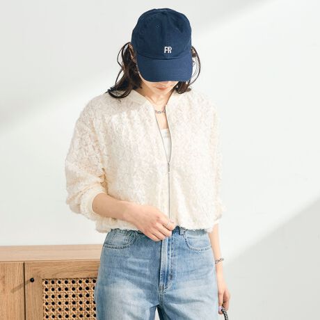 透け感で魅せるシアーレースZIPブルゾン