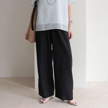 ・ドライタッチで清涼感のあるタンブラー素材を使用したセミワイドパンツ