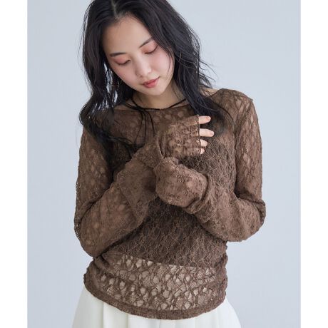 シャーリングスリーブレースプルオーバー