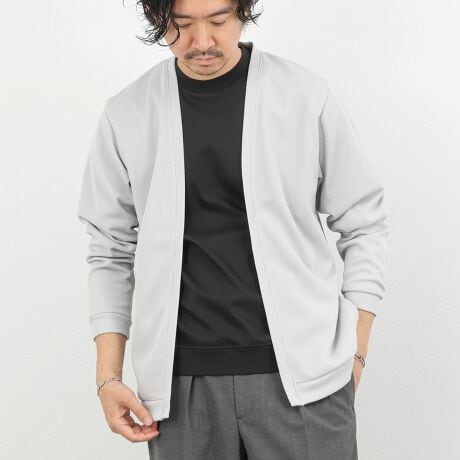 ・ボタンを省いたミニマルなボタンレスカーディガン