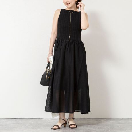 ・シャープなスクエアネックで凛とした女性らしさのあるデザイン