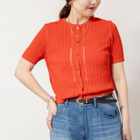 ・程よい透け感とシャリ感が、夏のスタイルに涼やかでヘルシーなアクセントを添える一枚
