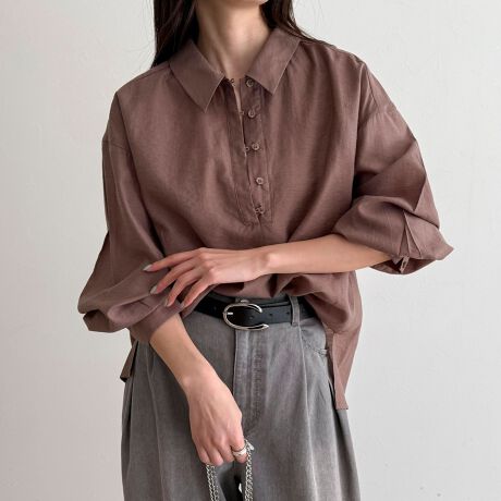 涼しげな抜け感を叶えるリネン混シアースラブブラウス