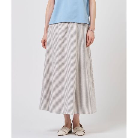 ■デザイン歩くたびにふんわりと揺れるシルエットが女性らしい、ロングフレアスカート。 たっぷりと生地を使用したフレアラインが、気になるボディラインを拾いにくく、優雅な印象を与えてくれます。ウエスト部分はゴム仕様になっており、締め付け感の少ない快適な穿き心地です。裏地付きで、透け感を気にせず安心して着用いただけるのも嬉しいポイント。Tシャツと合わせたカジュアルなスタイルから、ブラウスを合わせたきれいめなコーディネートまで幅広く活躍します。リラックス感あふれる、そよ風をまとったような軽やかな揺れが魅力の1着です。カラーは、やわらかい印象を与えるブラウンストライプ(#130)、爽やかで上品な印象のブルーマルチ(#170)の2色展開です。