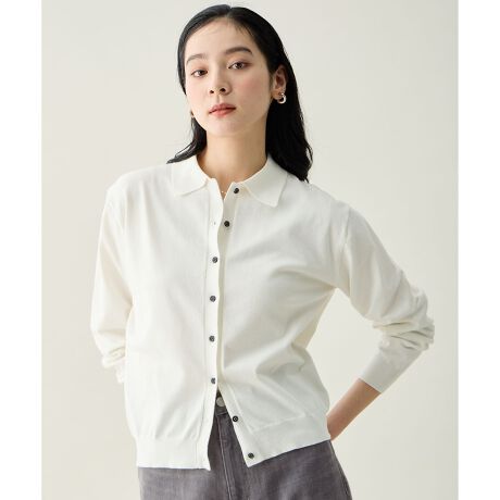 オン/オフ問わず活躍!1枚で着映えるポロカーデ