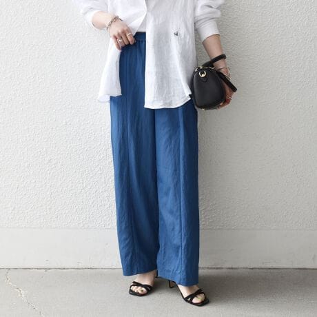 太めシルエットとセンターシームが、縦のラインをきれいに見せてくれるワイドパンツ。