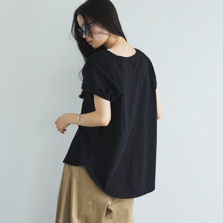 ・程よくゆとりのあるサイジングで身体のラインを拾わずラクな着心地