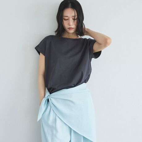 ・袖の折り返しや少し前後差のある裾など、さりげないディティールが着まわしやすいデザイン