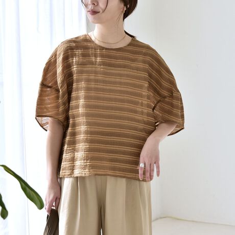 《予約》quaranciel:〈洗濯機可能〉ジャガード ボーダー シアー ブラウス