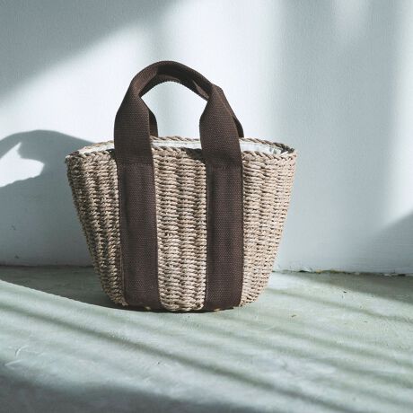 ナチュラルな風合いと、配色ハンドルがアクセントになったバケツ型トートバッグ。