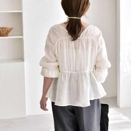 シアー感と、ナチュラルな風合いが魅力のリネンブラウス。