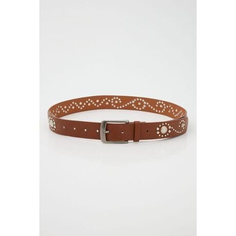 【F/LEATHER STUDS BELT】■POINT/DETAILSLYオリジナルで作成したスタッズデザインが目を惹くフェイクレザーベルト。大きめのコンチョがポイントとなっており、どこから見ても存在感のあるヴィンテージライクなアイテムです。ボトムスのベルトループに通せる程よい太さがどんなスタイリングとも馴染みやすくなっています。ブラックとブラウンの2色展開です。■STYLINGシンプルなスタイリングの仕上げに、プラスするだけでスタイリングを格上げしてくれるデザインベルトです。デニムなどにはもちろん、ワンピースなどのウエストマークにも使える万能アイテムです。トレンドのローウエストでの着用も可能なサイズでご用意しております。■FABRIC/MATERIAL合成皮革を使用。※お取り扱い上のご注意・合成樹脂を使用しています。・使用回数にかかわらず、時間の経過と共に劣化が生じ、剥離やひび割れ、光沢の減少等が生じます。・汚れが付着したままの放置は劣化を早めますのでご注意下さい。・過度な摩擦や引っ張りは樹脂の剥離の原因になりますのでお避け下さい。・保管は高温多湿を避け、光の当たらない場所に保管して下さい。・濃色は色落ちする場合があります。濃淡の配色組み合わせは避けてください。[注意事項]※画像の商品はサンプルです。実際の商品と仕様、加工が若干異なる場合があります。※画像の商品は光の照射や角度、お使いのモニター環境により、実物と色味が異なる場合がございます。※着用、お取り扱いの際は、アテンションタグをご確認ください。※一部予約商品につきましては生産上の都合によりお届け予定日や店頭発売と前後する場合もございます。※追加生産商品は、一部の店舗、通販で販売中の場合がございます。予めご了承下さい。