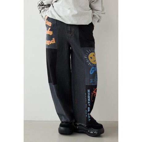 ■ポイント大人気のリメイクライクデザインのシリーズのワイドパンツ。トレンドでもあるさりげないカーブシルエットは脚長効果もあるので、低身長から高身長の方々まで幅広く着用することができます。ウエストベルトはサイドゴム仕様なので穿きやすさ抜群です。■ディテールまるでヴィンテージのエコバッグのようなファブリックとデニムとのドッキングはロデオならではのデザイン。企業ロゴやカレッジなどのグラフィックもロデオオリジナルのグラフィックでユニークな印象です。■スタイリングジャストウエストの穿き位置なので、オーバーシルエットのトップスはフロントだけインさせてメリハリあるスタイリングをお楽しみください。無地アイテムとの合わせでパンツデザインをコーディネートのポイントにお楽しみください。■生地デニム部分には11.5ozのINDIGOデニム、硫化BLACKデニムを使用。別布には21/-スラブツイルを採用し、配色切替がデザインポイントです。素材ごとにパーツ加工を施し接ぎ合わせた後、製品洗いを行うことで、全体になじみのある風合いに仕上げています。■透け感:なし■裏 地:なし■伸縮性:なし■光沢感:なし※お取り扱い上のご注意・デニム部分は経年変化により色落ちが生じます。・濡れたまま放置すると、デニムから色移りする可能性がありますのでご注意ください。[注意事項]※画像の商品はサンプルです。実際の商品と仕様、加工が若干異なる場合があります。※画像の商品は光の照射や角度、お使いのモニター環境により、実物と色味が異なる場合がございます。※着用、お取り扱いの際は、アテンションタグをご確認ください。