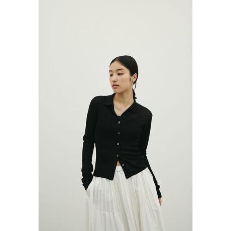 WHT:モデル身長163cm(FREEサイズ着用)BLK,MINT:モデル身長166cm(FREEサイズ着用)程よい抜け感を演出するスキッパーデザインが特徴のニットカーディガン。襟元の開きが顔まわりをすっきりと見せ、リラックス感ときちんと感を両立します。羽織りとしてはもちろん、フロントを閉じてトップス感覚でも着られる万能アイテム。さらりとしたタッチのニット素材で季節の変わり目にも重宝し、パンツにもスカートにも合わせやすいシルエットに仕上げています。シンプルながらも洗練された印象で、日常のスタイリングに取り入れやすい一枚です。透け感あり、ストレッチあり。【お手入れ方法】マシンウォッシュ可