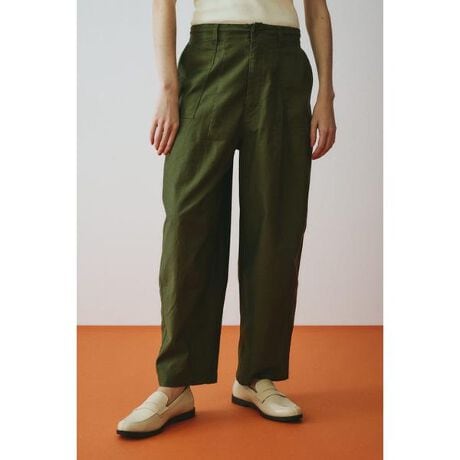 ダボっとしたシルエットが特徴的なリラックス感もあるミリタリーパンツ履くだけでこなれた印象になります。メンズライクなアイテムですが女性らしく着用できるように細部までこだわりました。幅広いスタイリングに重宝するカジュアルアイテムです。ラウンドフォルムベイカーパンツ[注意事項] ※画像の商品はサンプルです。実際の商品と仕様、加工が若干異なる場合があります。 ※画像の商品は光の照射や角度、お使いのモニター環境により、実物と色味が異なる場合がございます。 ※着用、お取り扱いの際は、アテンションタグをご確認ください。