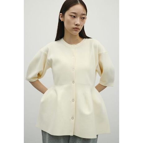 [型番:500JSA70-3201]モデル身長163cm(FREEサイズ着用)一枚で目を惹くトレンド感あふれるペプラムニットカーディガン。ウエスト位置をやや高めに設定しシェイプさせることで、ペプラムシルエットにメリハリを持たせ、スタイルアップを叶えてくれます。立体感のある5分丈フォルムスリーブが自然に二の腕をカバー。透け感なし、ストレッチあり。【お手入れ方法】マシンウォッシュ可
