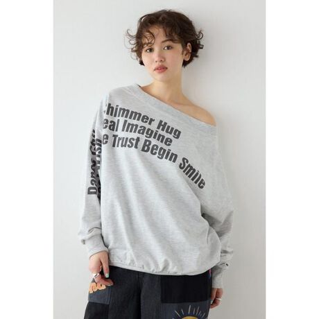 ■ポイント大人カジュアルな着こなしを楽しむ事ができるワンショルダースウェットトップス。シンプルながら存在感があり、着回しがしやすく1枚でこなれた印象に仕上がります。デコルテ見せでレディライクなこなれ感あるスタイルを叶えてくれるスウェットトップスです。■ディテールラフなスウェット素材に、女性らしい抜け感をプラス。ほどよくあざとさのあるスタイリングが叶う、優秀トップスです。■スタイリングワンショルでの着用がおすすめです。抜け感のある女性らしさを演出する事ができます。ワイドな身幅とゆったりとしたオーバーサイズシルエットで、自然な体型カバーとスタイルアップを両立、リラックスして着用できます。■生地CVC(綿×ポリエステル)の生地にすることで軽くて丈夫な生地の仕上がり。ミニ裏毛仕様で、薄手でやわらかく、着心地の良さもポイントです。■透け感:なし■裏 地:なし■伸縮性:ややあり■光沢感:なし※お取り扱い上のご注意プリント箇所は着用・洗濯によリ白化、剥離する場合があります。プリント箇所は湿った状態で重ねて放置すると色移りの原因となりますので注意してください。[注意事項]※画像の商品はサンプルです。実際の商品と仕様、加工が若干異なる場合があります。※画像の商品は光の照射や角度、お使いのモニター環境により、実物と色味が異なる場合がございます。※着用、お取り扱いの際は、アテンションタグをご確認ください。