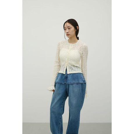 タックショルダーレースカーデ