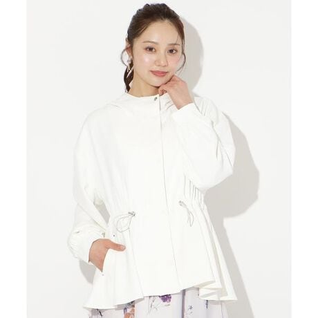 シルエット変化が楽しめる、ドロストペプラムフードブルゾン【Design】・ウエストのドローストリングで、シルエットの調整ができるペプラムデザイン。・裾に向かって広がるラインが、女性らしいバランスを演出します。・フード付きデザインで、程よくカジュアルな抜け感をプラス!・軽く羽織れるブルゾンタイプで、季節の変わり目に活躍◎・パンツやスカートにも合わせやすく、幅広いスタイリングに対応します♪【Fabric】・程よいハリ感のある素材を使用し、シルエットをきれいにキープ。・軽やかな着心地で、デイリー使いしやすい素材感です。・ホワイト、ベージュ、ブラックの3色展開となります。【Care】ドライクリーニング