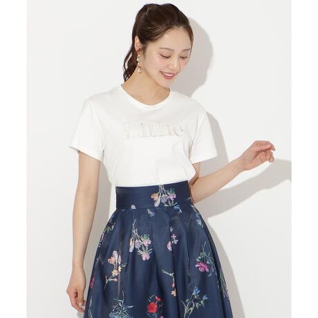 ビジュー付き刺繍ロゴTシャツ