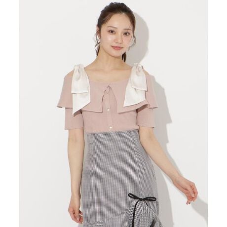 リボンオフショルハーフスリーブニット