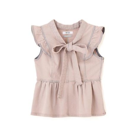 SOMETHING×JILL by JILL STUART 別注アイテム。襟元のボウタイや裾のぺプラム、さりげないフリル袖がポイントのフェミニンなトップス。気になる二の腕をカバーしながら可愛らしさも叶えます。サムシング定番のストレッチ性のある着心地の良いデニム生地を使用。同素材のパンツ(ブランド品番125-6130030)とのセットアップもおすすめです。カラーは、キレイめの濃色ワンウォッシュと、色落ちデニムにピンクを重ねた2色展開です。※撮影時照明の関係により、色味が違って見える場合がございます。またパソコン・スマートフォンなどの環境により、若干製品と画像のカラーが異なる場合もございます。予めご了承ください。商品の色味は、商品単品画像をご参照下さい。※商品画像はサンプルのため、色味やサイズ等の仕様に変更がある場合がございますので、予めご了承ください。