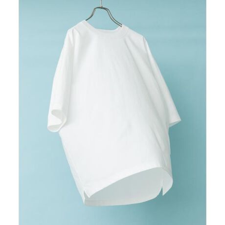 着丈はすっきりジャスト丈に、身幅は広めに設定しています。ほどよくドロップショルダーで、一枚でも様になる一着です。