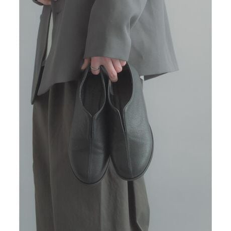 ・シンプルながらも捻りの効いたデザインで、履くだけでトレンド感のある着こなしを実現。オンオフ問わず、幅広いスタイリングに馴染む汎用性の高い一足です。