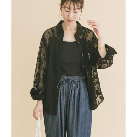繊細なレースとメッシュ素材が重なり合い、軽やかな透け感を楽しめるレースメッシュシャツ。程よいシアー感がコーディネートに抜け感をプラスし、シンプルなスタイリングもぐっと旬な印象に仕上げてくれます。身幅にゆとりを持たせたシルエットでラフに着こなせるのもポイント。インナーとのレイヤードを楽しんだり、前を開けて羽織りとして取り入れたりと着こなしの幅が広がります。大人のカジュアルスタイルに程よい華やかさを添える一枚です。