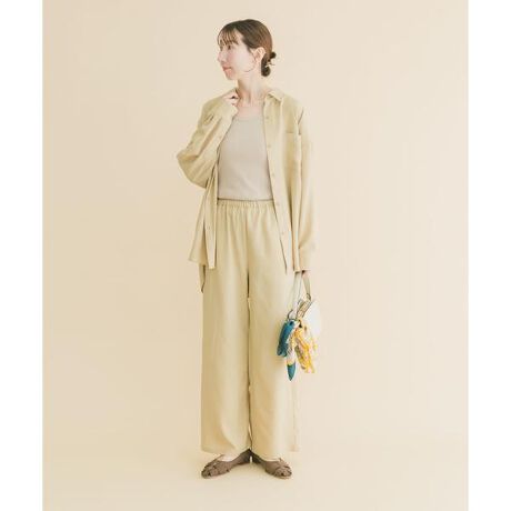 ゆったりとした長袖シャツと、リラックス感のあるイージーパンツがセットになったアイテム。落ち感のある素材がつくる自然なドレープで、シンプルながらも洗練された雰囲気に仕上がります。UVカットと吸水速乾の機能素材を使用しており、日差しの強い日や汗ばむ季節でも快適な着心地。セットで着れば統一感のあるスタイルが完成し、シャツやパンツはそれぞれ単品でも着回し可能。オンにもオフにも取り入れやすい、大人のデイリーアイテムです。