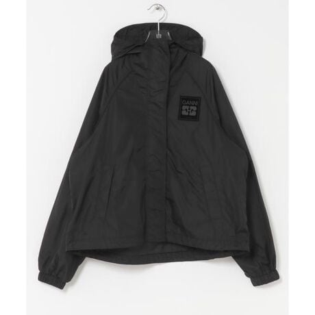 スポーティーな印象の強いナイロンパーカーを、GANNIらしいエッジの効いたオーバーサイズシルエットと、都会的なマットブラックでモードな一着へと昇華させています。