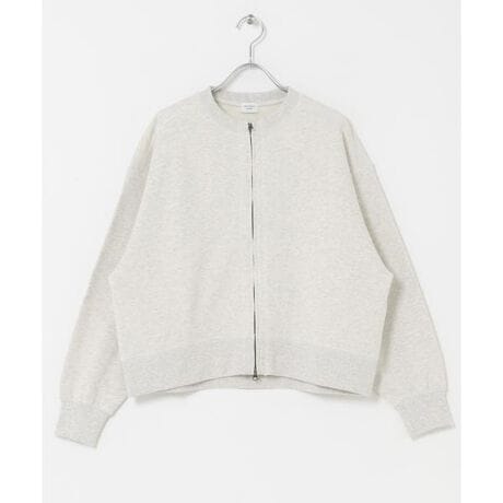 コットン素材のスウェットカーディガンは、フロントに施したジップの開閉によって温度調節がしやすく、さっと羽織れる気軽さが魅力。