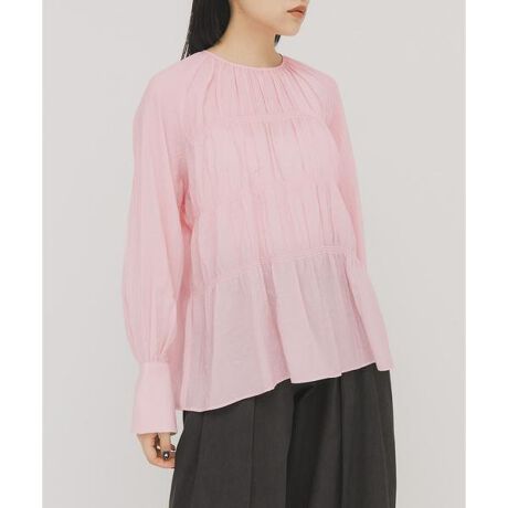 ティアードデザインが女性らしく、存在感を放つブラウス。少し表面感のある素材を使用しており、程よくハリはありつつも肌に馴染む素材で柔らかな雰囲気に仕上げました。ベーシックなIVORYとBLACK、春にぴったりなPINKをご用意しました。