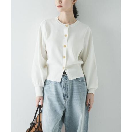 コンパクトな丈感と立体的なコクーンスリーブが着映えを叶えるカーディガン。