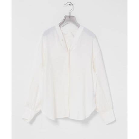 Vネックが端正な抜け感を与え、オンオフ問わず軽やかに着回せるネックブラウス。
